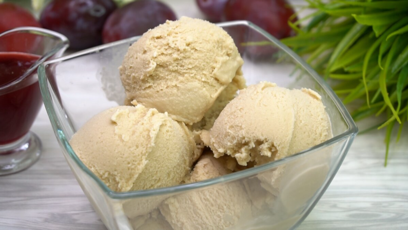 Переливаем в контейнер для заморозки и ставим в морозильник. Через 2-3 часа перемешиваем, чтобы избежать образования кристаллов льда. Как только мороженое застынет, десерт готов к подаче!