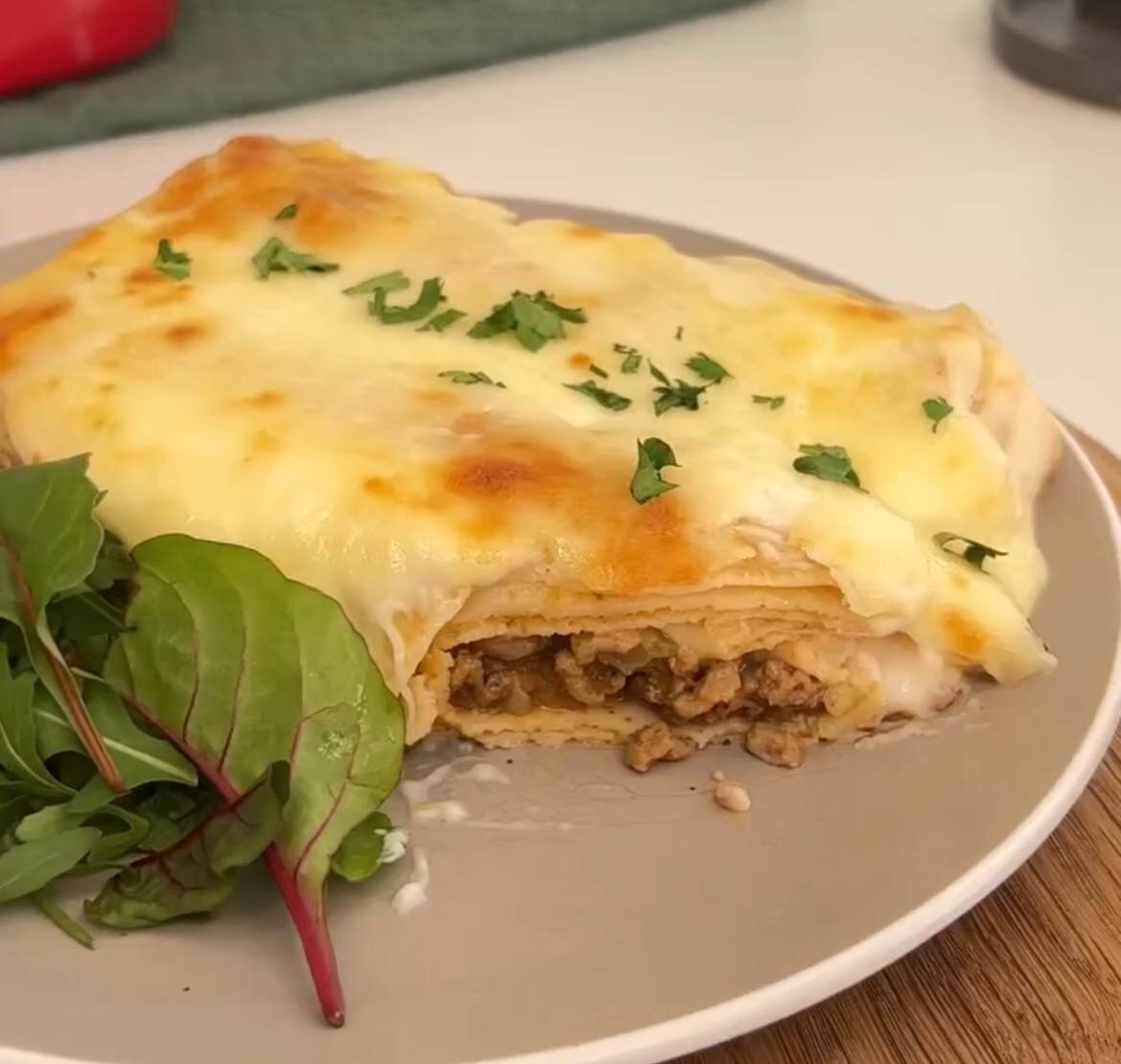 На каждый блин выложите немного мясной начинки и соуса бешамель, можно сверху посыпать тертым сыром. Аккуратно сверните блинчики и уложите их в форму для запекания. Полейте оставшимся соусом, добавьте еще немного сыра и, по желанию, украсьте свежими травами. Запекать при температуре 180 градусов Цельсия около 15 минут до золотистой корочки.