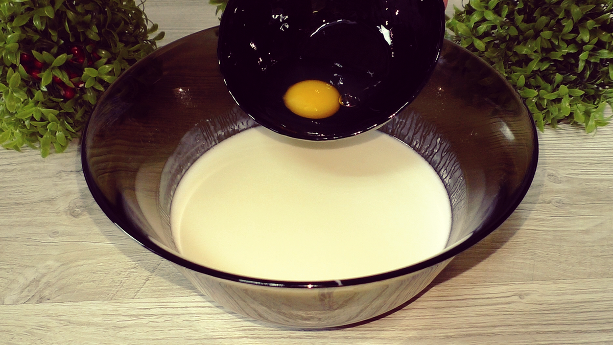 Начать следует с того, чтобы слегка подогреть кефир и добавить к нему яйцо. Затем тщательно перемешать массу. Далее добавляются соль, сахар и растительное масло, после чего все снова перемешивается.