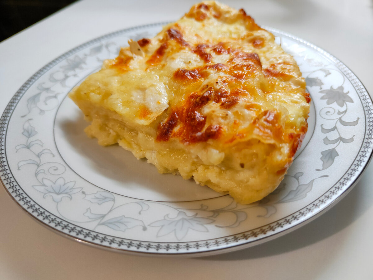 Учтите, что начинка при разрезании в горячем виде может быть жидковатой. Дайте ачме немного остыть, и она станет более плотной, сохраняя свою форму.