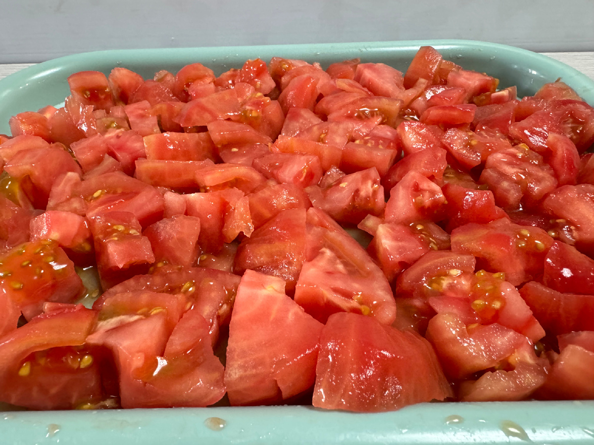 Подготовьте помидоры: Очистите их от шкурки любым удобным способом: бланшированием, с помощью ножа или овощечистки.
