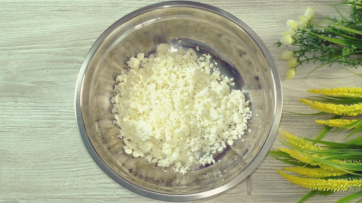 Количество муки может варьироваться в зависимости от влажности творога. В среднем потребуется 3 столовые ложки (при использовании рисовой муки тесто становится особенно воздушным). Опять же, не забыть добавить разрыхлитель и тщательно перемешать.