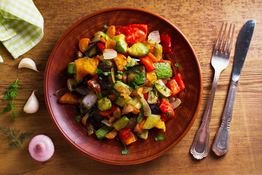 Рецепт: летнее овощное рагу с баклажанами и кабачками