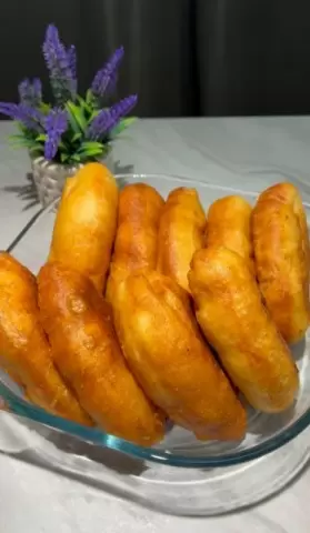 - Опускать пирожки отверстием вниз, затем перевернуть и жарить до золотистого цвета.