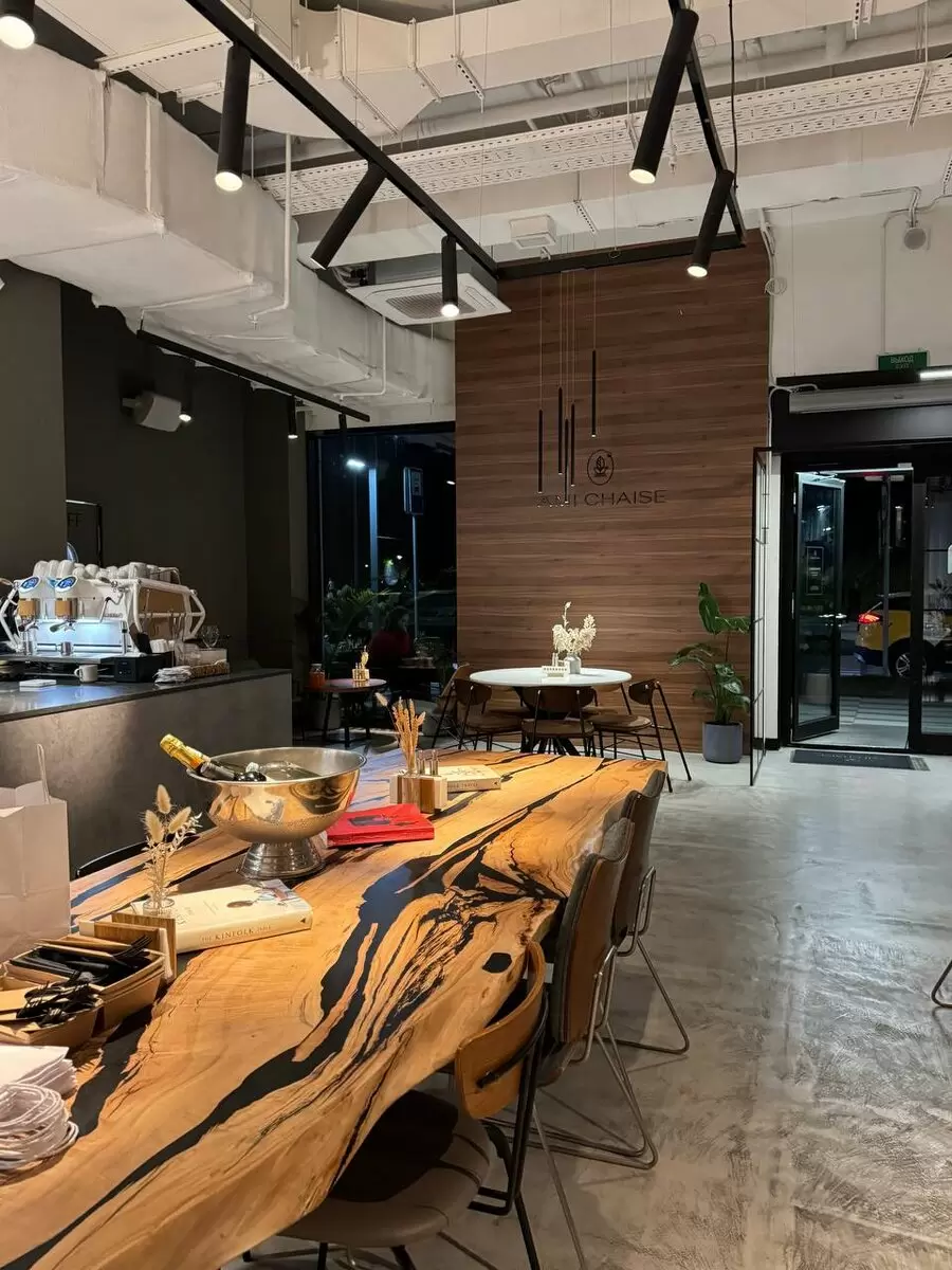 Ami Chaise притягивает внимание своим продуманным дизайном: здесь все сделано с заботой о посетителях. Просторные залы, строгие линии и отсутствие лишнего декора создают атмосферу спокойствия и расслабленности. Также доступна уютная веранда, хотя в час пик она может быть занята. Тем не менее, можно с удовольствием провести время за столиками внутри, утопая в беседе и наслаждаясь отменной кухней.