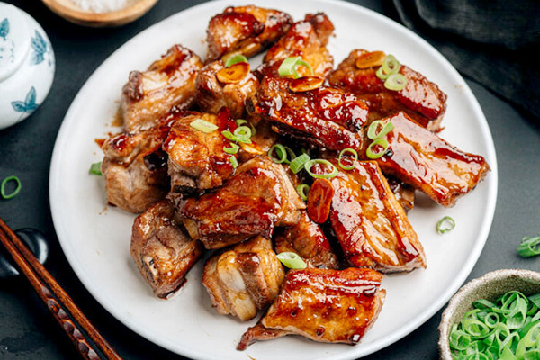 Здесь интерес к ребрышкам не в длинном списке ингредиентов, а именно в последовательности действий. Соус сам по себе прост: темный рисовый уксус, светлый соевой соус и сахар. Однако секрет успеха кроется в этапе подготовки мяса, где ключевую роль играет расплавленный сахар. Он не только придаёт сладость, но и создает цвет, карамельный оттенок и сухую поверхность, за которую потом пора уже шагнуть к глазури.