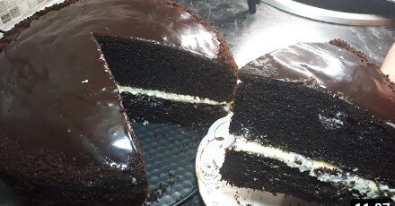 Выпекайте в разогретой до 170 градусов духовке в течение 45-50 минут. Тем временем приготовьте крем, смешав творог со сгущенным молоком и кокосовой стружкой. После того, как торт остынет, разрежьте его на два коржа, прослаивая их кремом, и полейте сверху растопленной глазурью со сметаной. Вот и всё! Ваш нежный торт готов к подаче!