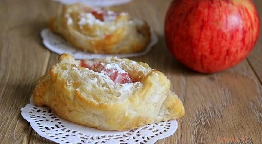 - Открытые слойки с яблоками: Эти слойки готовятся быстро и просто, идеальны для десерта к чаю.