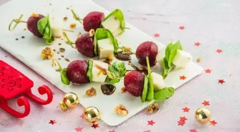 Предлагаем вам попробовать необычный салат, в основе которого лежат свекла и козий сыр. Он подается на шпажках и станет настоящим украшением вашего стола.