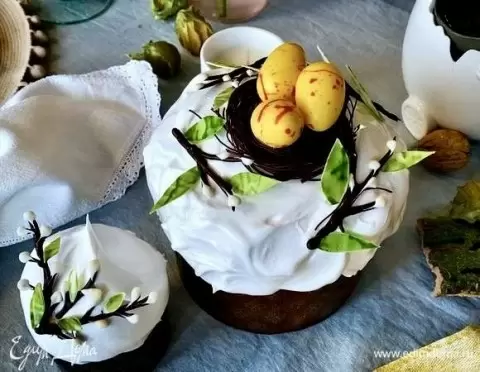 11. Обмакивайте готовые куличи в меренгу и обожгите их газовым горелкой.