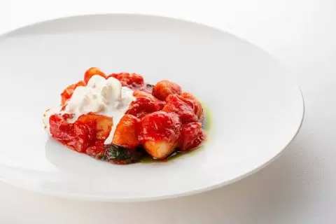 На сервировочную тарелку выкладываются готовые ньокки, которые щедро поливаются приготовленным соусом. Не забудьте добавить свежие листики базилика для дополнительного аромата. И, наконец, сверху укладывается страчателла — эта мягкая и кремообразная моцарелла станет отличным завершением этого простого, но совершенного блюда. А для настоящих гурманов стоит добавить немного натертого пармезана, чтобы подчеркнуть все вкусовые нотки. Приятного аппетита!