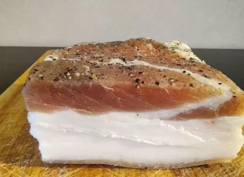 - 1 кг свиного сала, желательно с мясными прослойками;